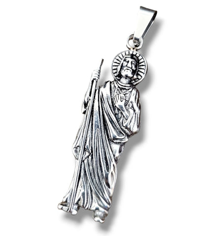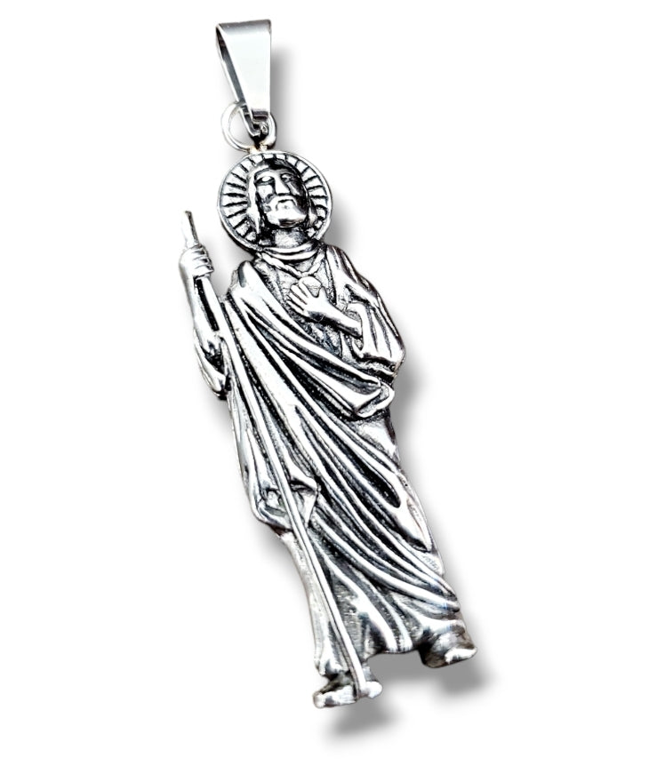 Beautifull 316l stainless steel pendant with unique San Judas design!! Size is about 2" × 1/2"