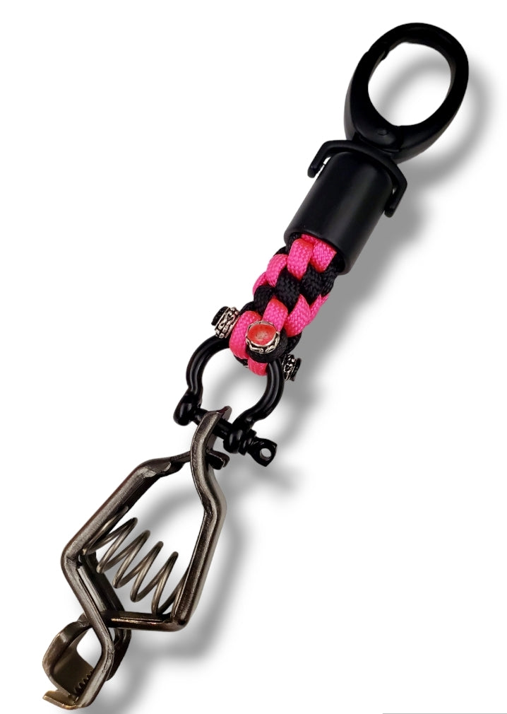 The Black Noir Pink and Black Glove Clip is the perfect addition to your work safety equipment. Made with durable paracord and a strong stainless steel shackle, this clip securely holds your gloves when not in use, preventing them from getting lost or misplaced. Its sleek black out design adds a touch of style to your workwear, while its practicality keeps you safe on the job. Say goodbye to lost gloves and hello to enhanced work safety with The Black Noir Pink and Black Glove Clip.