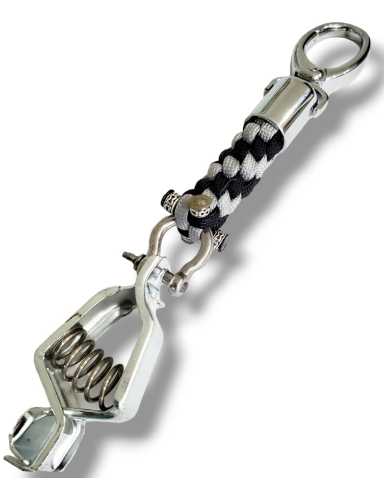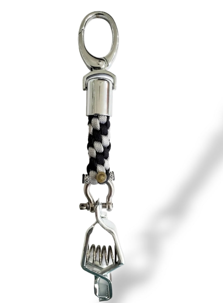 The Silver and Black Glove Clip is an essential accessory for those in need of work safety equipment. Made with durable materials, this clip features a sleek silver and black paracord design with a chrome tassel hook and stainless steel shackle. Keep your gloves securely attached to your work belt or tool bag for easy access and never lose them again. The clip is easy to use and can be attached to any style of gloves. Stay safe on the job site with the Silver and Black Glove Clip.
