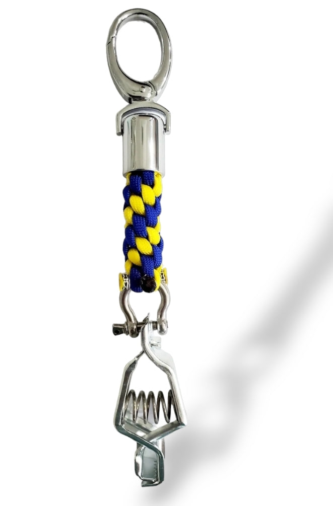 The Blue and Yellow Glove Clip is an essential accessory for those in need of work safety equipment. Made with durable materials, this clip features a sleek blue and yellow paracord design with a chrome tassel hook and stainless steel shackle. Keep your gloves securely attached to your work belt or tool bag for easy access and never lose them again. The clip is easy to use and can be attached to any style of gloves. Stay safe on the job site with the Blue and Yellow Glove Clip.