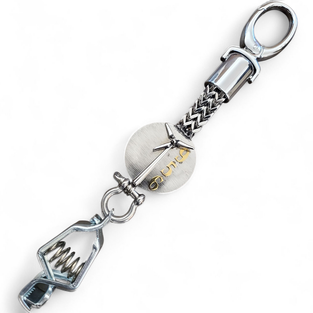 "This beautiful wind turbine glove clip is handcrafted from durable stainless steel, combining strength and style. Designed with precision and care, it features a detailed wind turbine motif—perfect for wind techs and renewable energy professionals. Rugged enough for the jobsite, yet sleek enough to show off your craft."