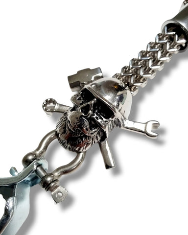 Amazing 316L stainless steel glove clip with a unique boilermaker skull design.