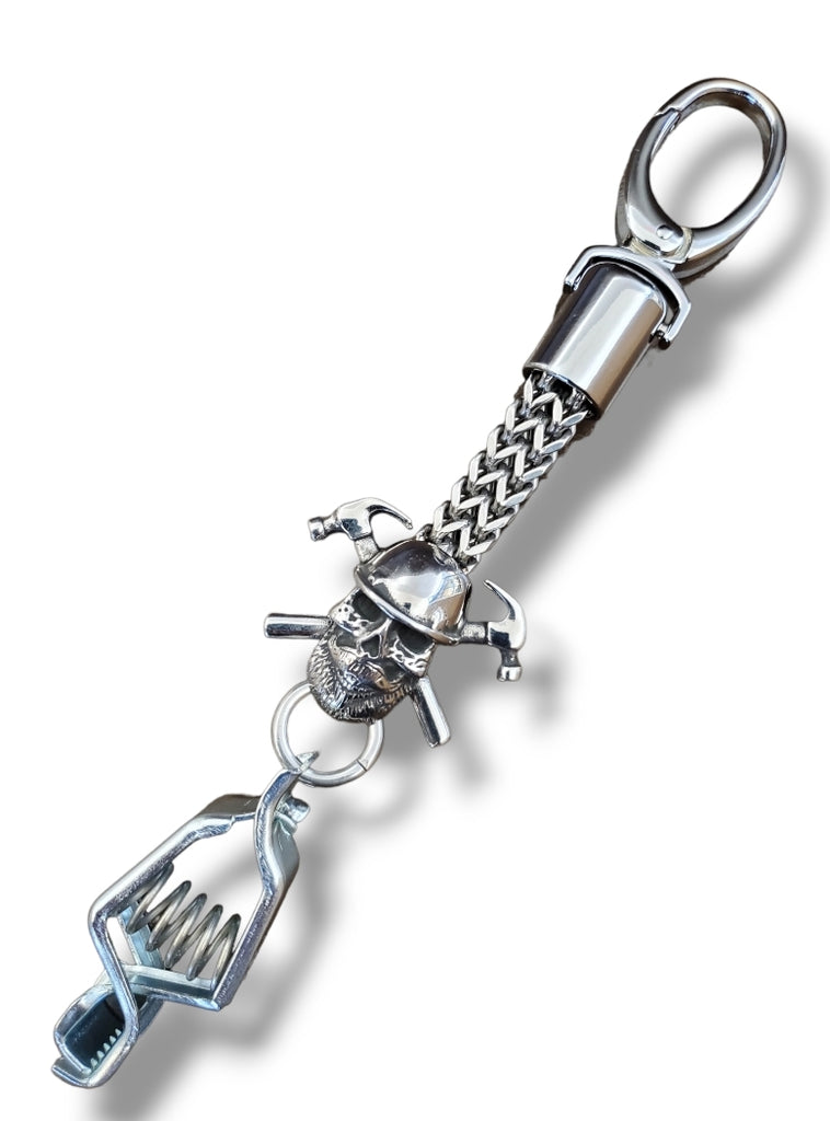 Amazing 316L stainless steel glove clip with a unique carpenter skull design.