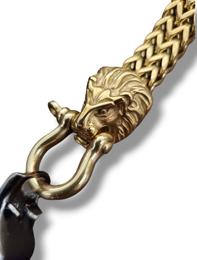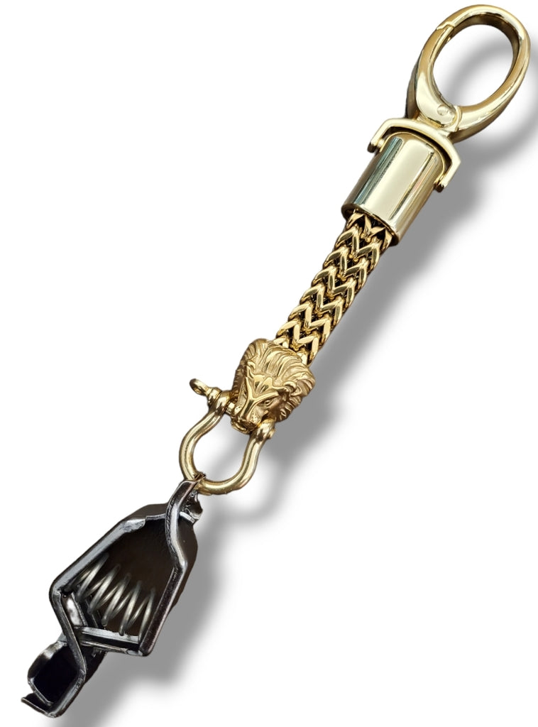 Beautifull 316l stainless steel chain, gold glove clip with awesome lion design! All Clips come with an awesome micro Bolt Bag Gift Bag!