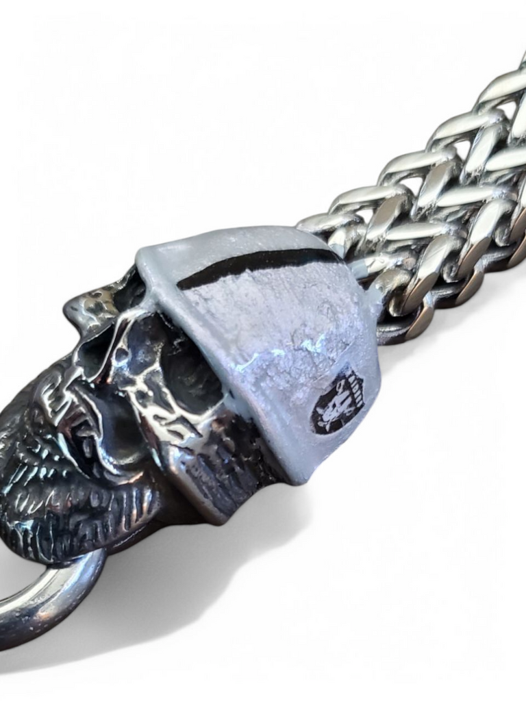 Customized 316L stainless steel Glove Clip with hand painted hard hat for Raiders fans. These are hand painted by a miniature painter so each Clip is slightly different. They are coated with epoxy resin to protect the paint and it gives it a beautiful lacquer finish.