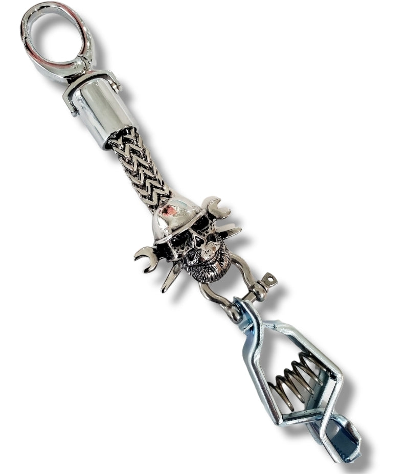 Amazing! 316L stainless steel glove clip with a skull and spud wrenches design and shackle.