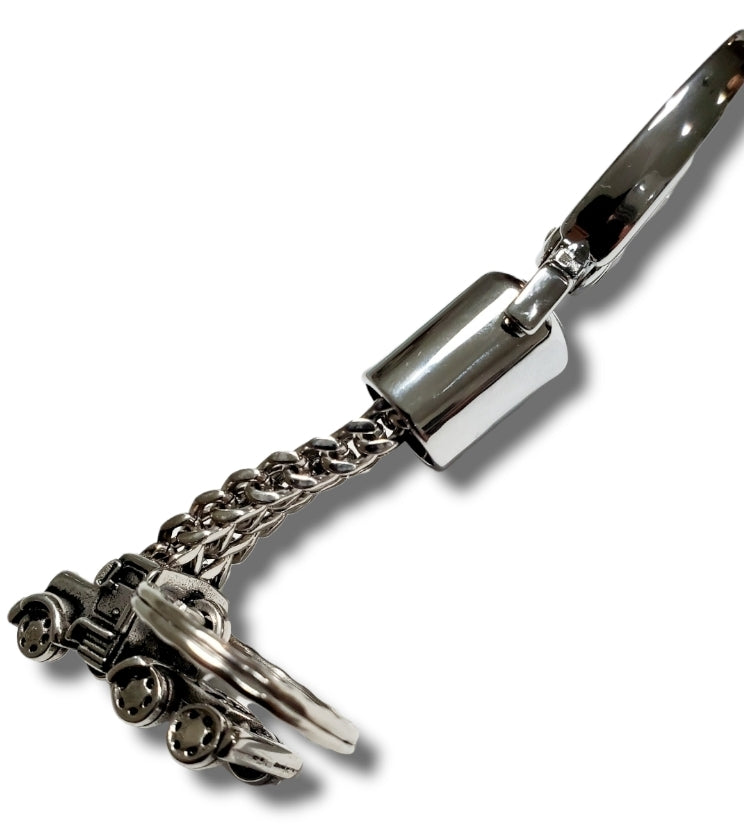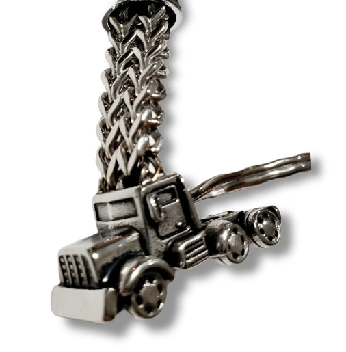 Beautifull stainless steel chain keychain with semi truck desing!