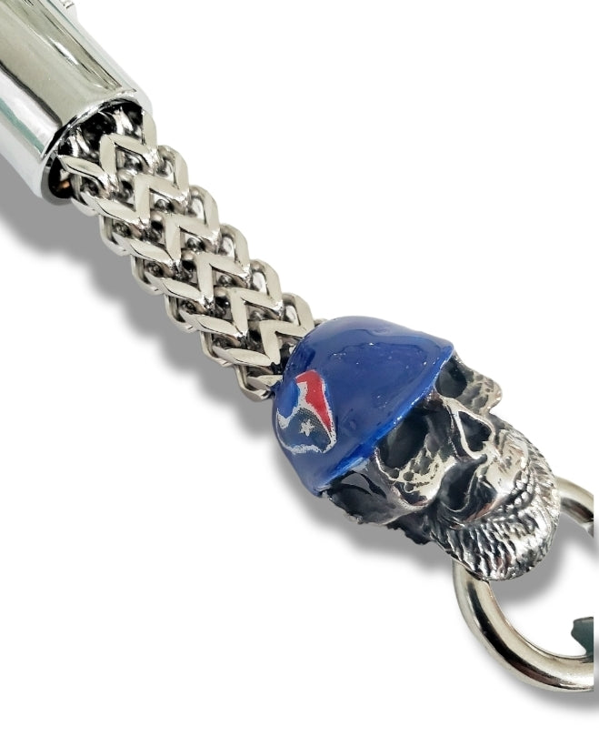 Customized 316L stainless steel Glove Clip with hand painted hard hat for Texans fans. These are hand painted by a miniature painter so each Clip is slightly different. They are coated with epoxy resin to protect the paint and it gives it a beautiful lacquer finish.